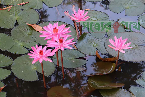 রোববার সকাল সাড়ে ছয়টার দিকে দেওরাছড়া চা-বাগানের ছোট বাংলা এলাকায় ঝাঁকে ঝাঁকে লাল শাপলার সঙ্গে দেখা। সঙ্গে সঙ্গে মনে পড়ে গেল কবি বিনয় মজুমদারের কবিতার কিছু পঙ্ক্তি—‘বর্ষাকালে আমাদের পুকুরে শাপলা হয়, শীত গ্রীষ্মে এই/ পুকুর সম্পূর্ণ শুশক হয়ে যায় পুকুরের নিচে ঘাস গিজায় তখন— /পুকুরে শাপলা আর থাকে না, আবার সেই বর্ষাকাল আসে/ তখন পুকুরটিতে জল জমে পুনরায় শাপলা গজায়।