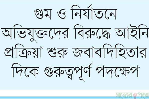 পূর্ববর্তী সরকারের অধীনে গুম ও নির্যাতনের অভিযোগে অভিযুক্তদের বিরুদ্ধে আইনি প্রক্রিয়া শুরু জবাবদিহির দিকে একটি গুরুত্বপূর্ণ পদক্ষেপ। এই প্রথম দেশে গুমের জন্য আনুষ্ঠানিক অভিযোগ আনা হলো। এটি ভুক্তভোগী ও তাদের পরিবারের জন্য গুরুত্বপূর্ণ মুহূর্ত।