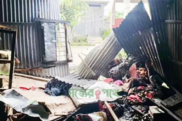 আগুনে ঘরসহ যাবতীয় আসবাবপত্র পুড়ে ছাই হয়ে যায়। ছবি:সত্যের পথে[/caption]