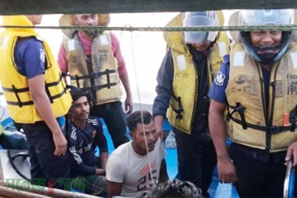 অভিযানে আটকদের সঙ্গে কথা বলছেন বাংলাদেশ নৌ-পুলিশের অতিরিক্ত ডিআইজি (অপারেশন্স) প্রবীর কুমার রায়। ছবি: সত্যের পথে[/caption]