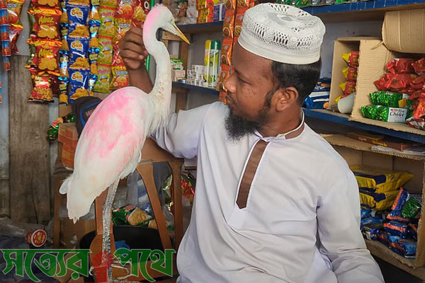 পটুয়াখালীর বাউফল উপজেলার নুরাইনপুর বাজারে দেখা যায় এক অদ্ভুত দৃশ্য, একটি সাদা বক দোকানের সামনে দাঁড়িয়ে আছে, মানুষের উপস্থিতিতেও কোনো ভয় নেই তার। কিছুক্ষণ পর দোকানের ভেতরে ঢুকে দোকানদার মো. হেমায়েত উদ্দিনের কাছে চলে যায়। গিয়ে তাঁর চেয়ারের হাতলে বসে পড়ে।